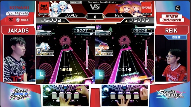 MAX-4の同点からREIK選手がつまみを切って2点、JAKADS選手が鍵盤の1点の失点でJAKADS選手がリード。