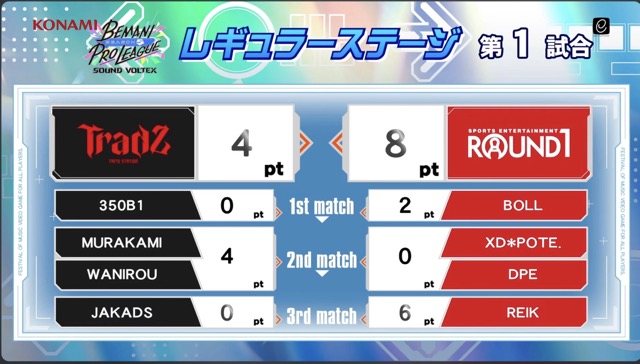 さて振り返るのは第1試合TAITO STATION Tradz vs ROUND1。