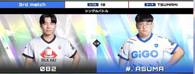 | 082 | 3rd match シングルバトル レベル18 テーマTSUMAMI 2pt×3 | #.ASUMA |