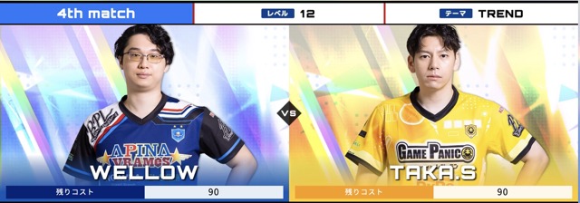 | WELLOW | 4th match レベル12 テーマTREND 4pt×2 | TAKA.S |