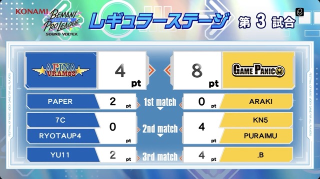 さて振り返るのは第3試合APINA VRAMeS vs GAME PANIC。