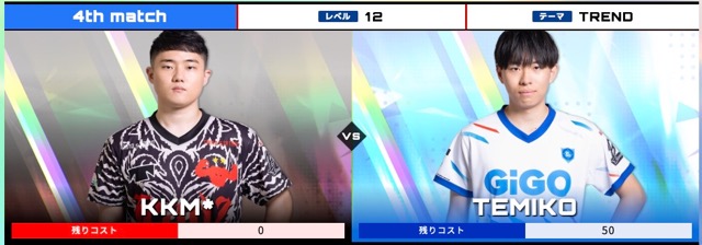 | KKM* | 4th match レベル12 テーマTREND 4pt×2 | TEMIKO |