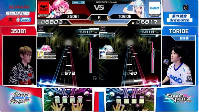 序盤から酔いかねないほどのシーソーゲーム。この曲においては縦連打の速さ・長さが音から非常にわかりにくいので両チームの選手の鍵盤が抜けたりこぼれたりしています。