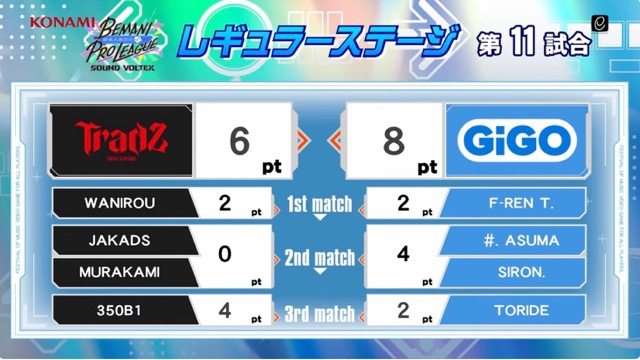さて振り返るのは第11試合TAITO STATION Tradz vs GiGO。