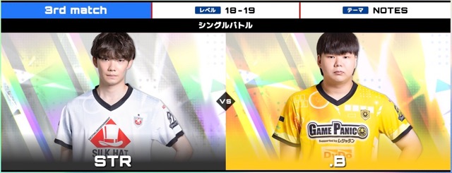 | STR | 3rd match シングルバトル レベル18〜19 テーマNOTES 2pt×3 | .B |