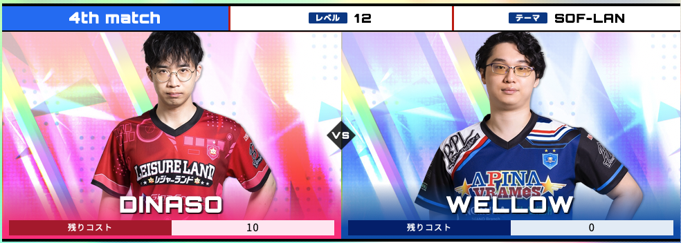 注目は4th match、DINASO選手vs WELLOW選手ですね。S2以来ですが大事な場面での試合でした。今シーズンもおそらく進退を決める一場面になるでしょう。