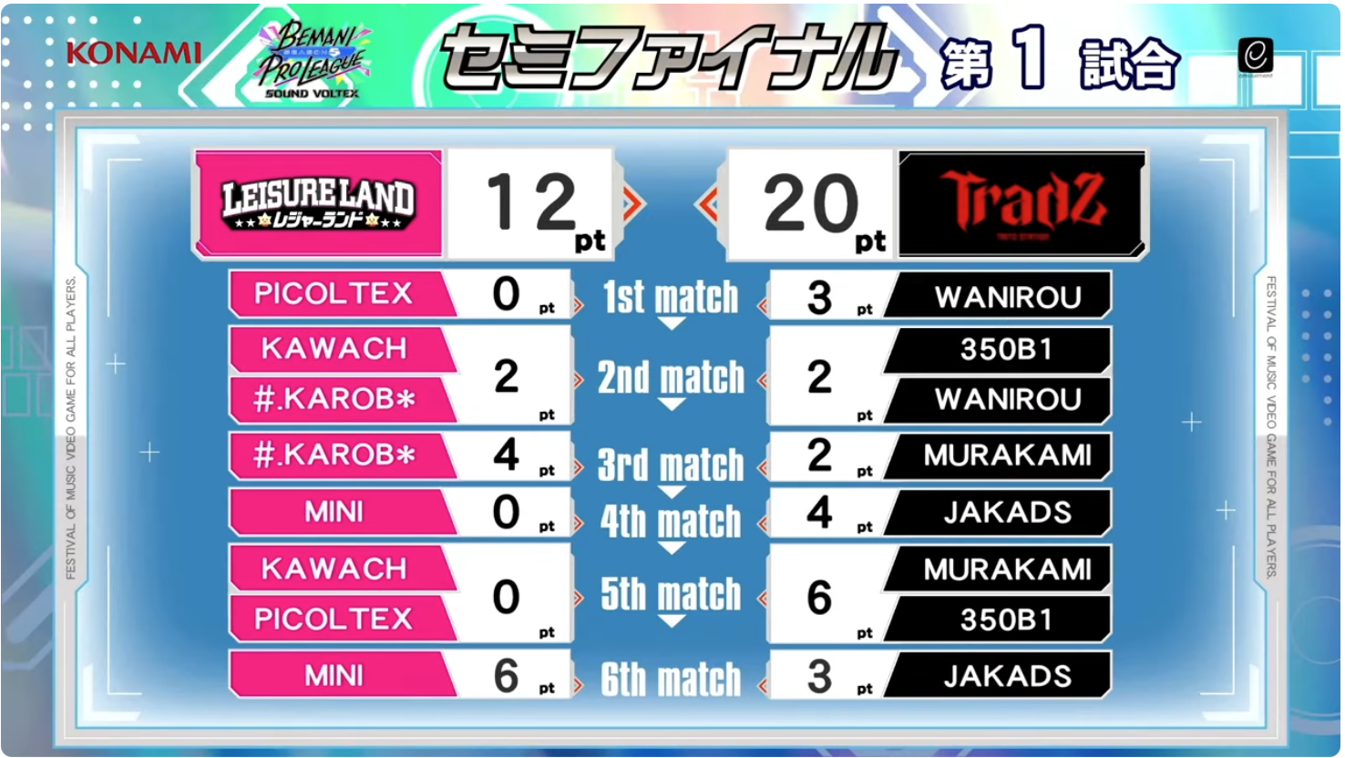 突発的にやるといやな譜面でしたがTradzのタッグが乗り越えました。かなり崩れやすい譜面にも関わらずここで両者安定なのが流石の強さ。